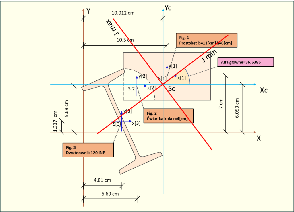 • JxcJx_c, JycJy_c – centralne momenty bezwładności układu figur