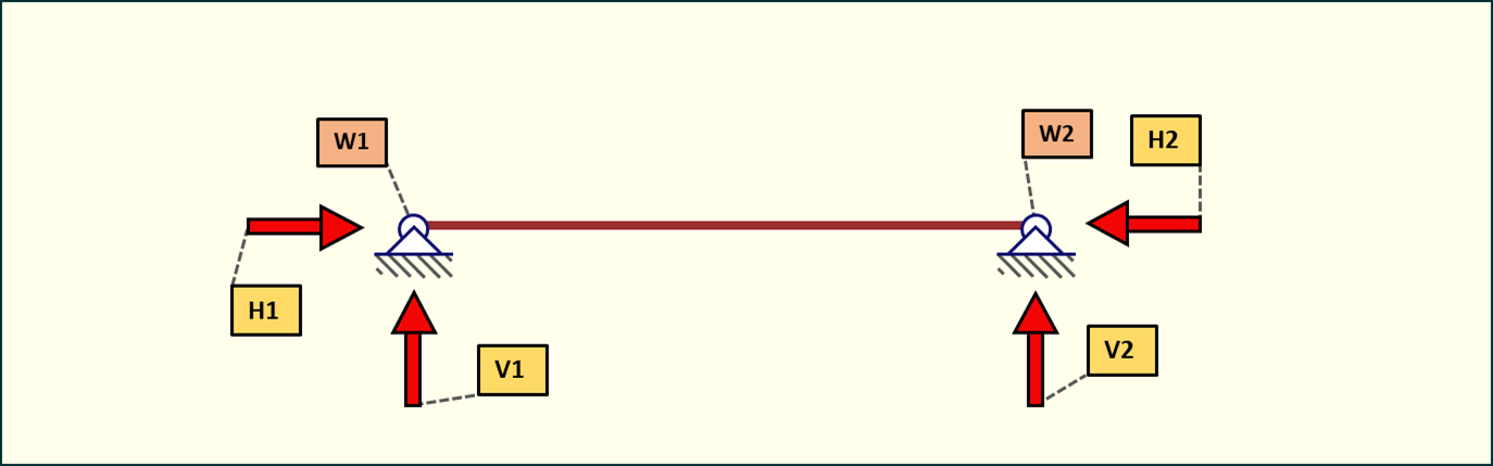 Rys. 2. Schemat reakcji w podporach przegubowo-nieprzesuwnych