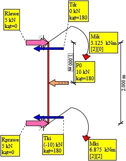 - Obliczanie momentów przywęzłowych, sił tnących i sił normalnych