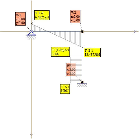 Rys. 15. Reakcje w węźle 1 - schemat
