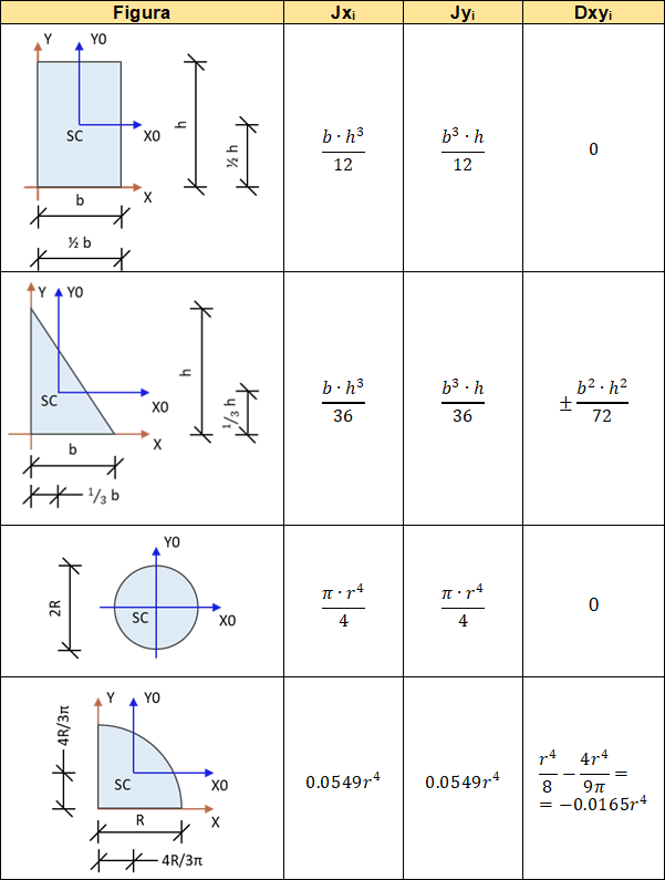 Rys. 2. Tablica wzorów na momenty bezwładności podstawowych figur