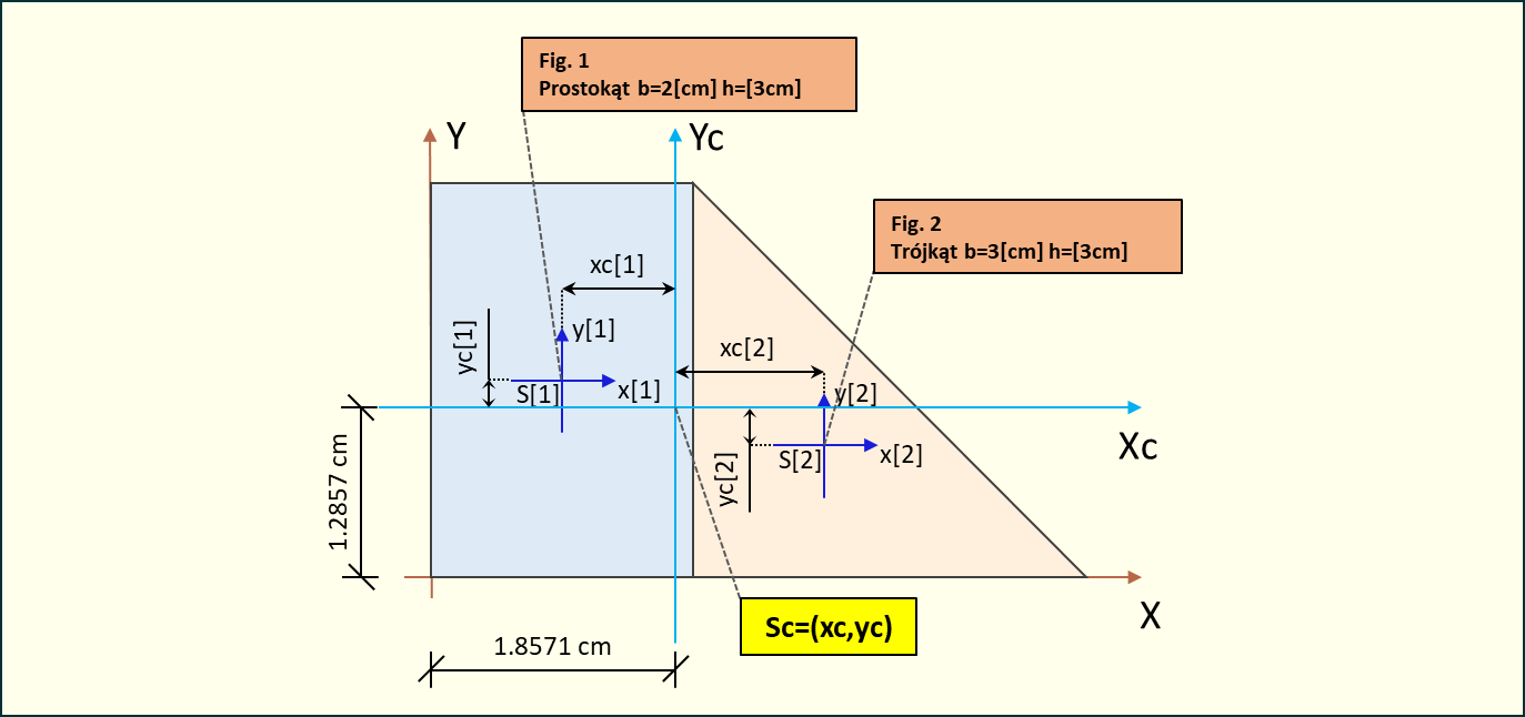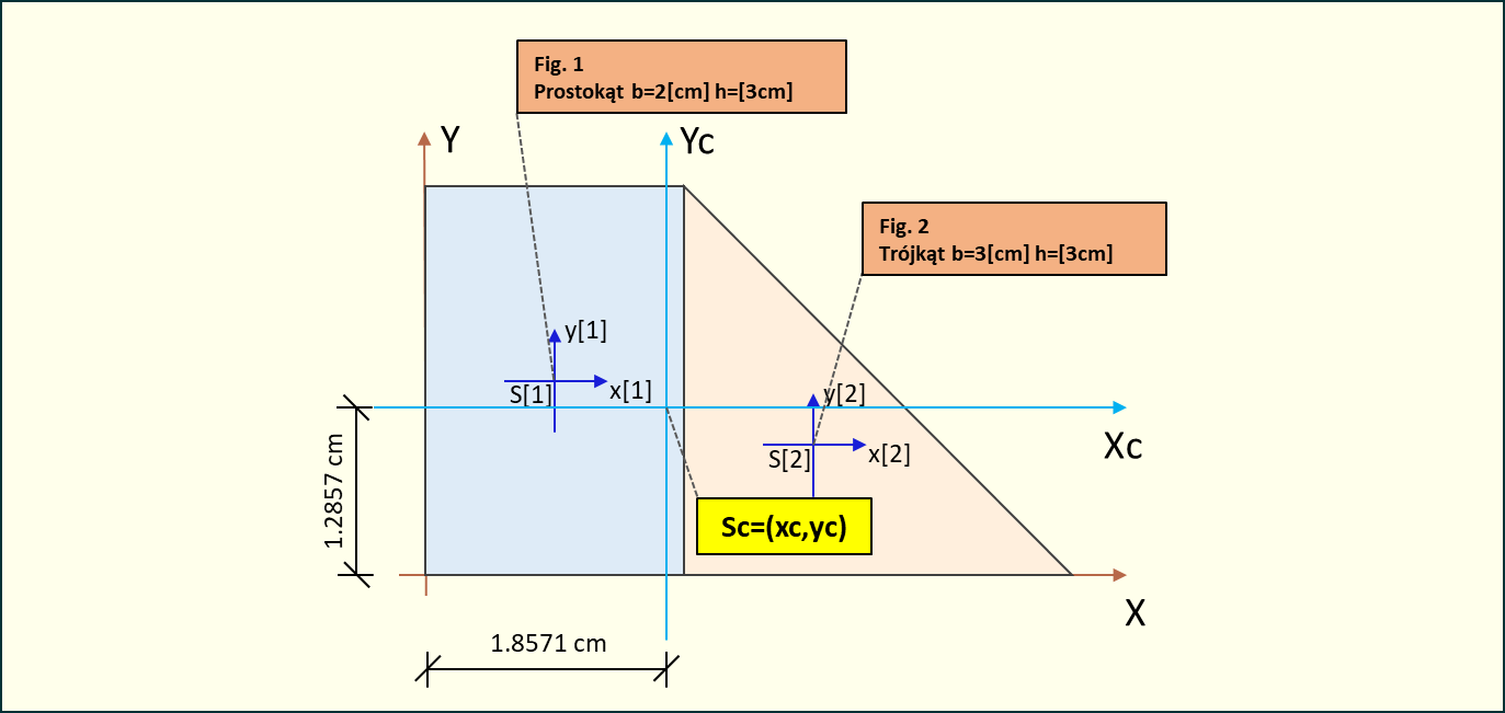 Mając powyższe dane możemy obliczyć geometryczny środek układu figur płaskich: