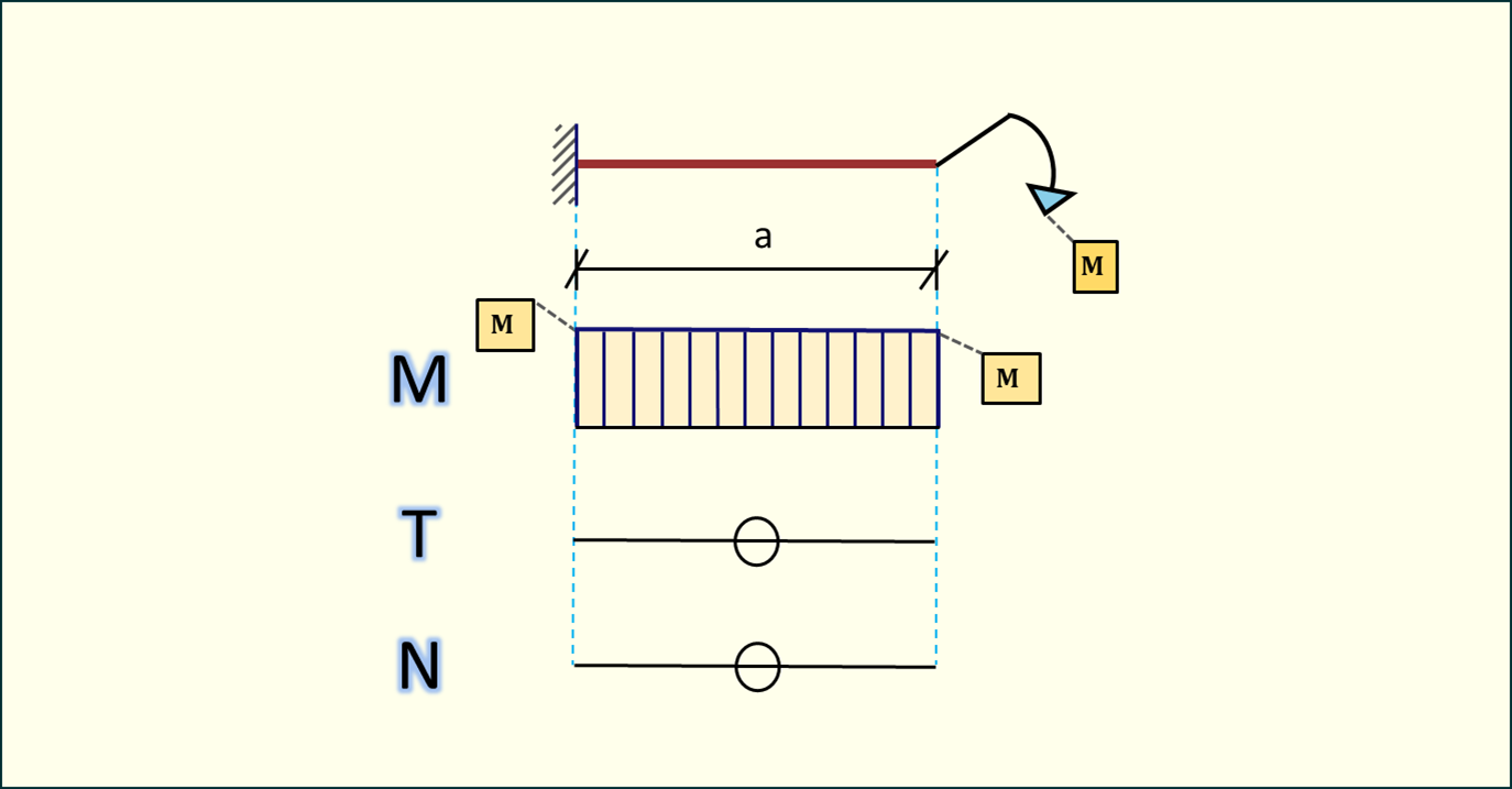 Na element działa tylko moment skupiony, więc moment we wsporniku będzie go równoważył.