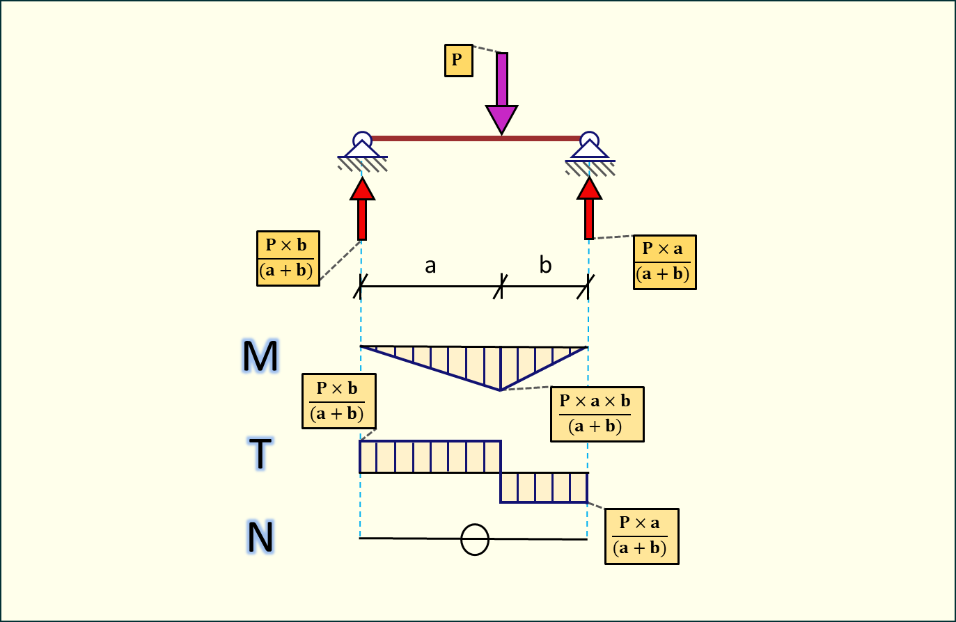 Mmax=VAa=Pbaa+bM_{max} = V_A \cdot a = \frac{P \cdot b \cdot a}{a + b}
